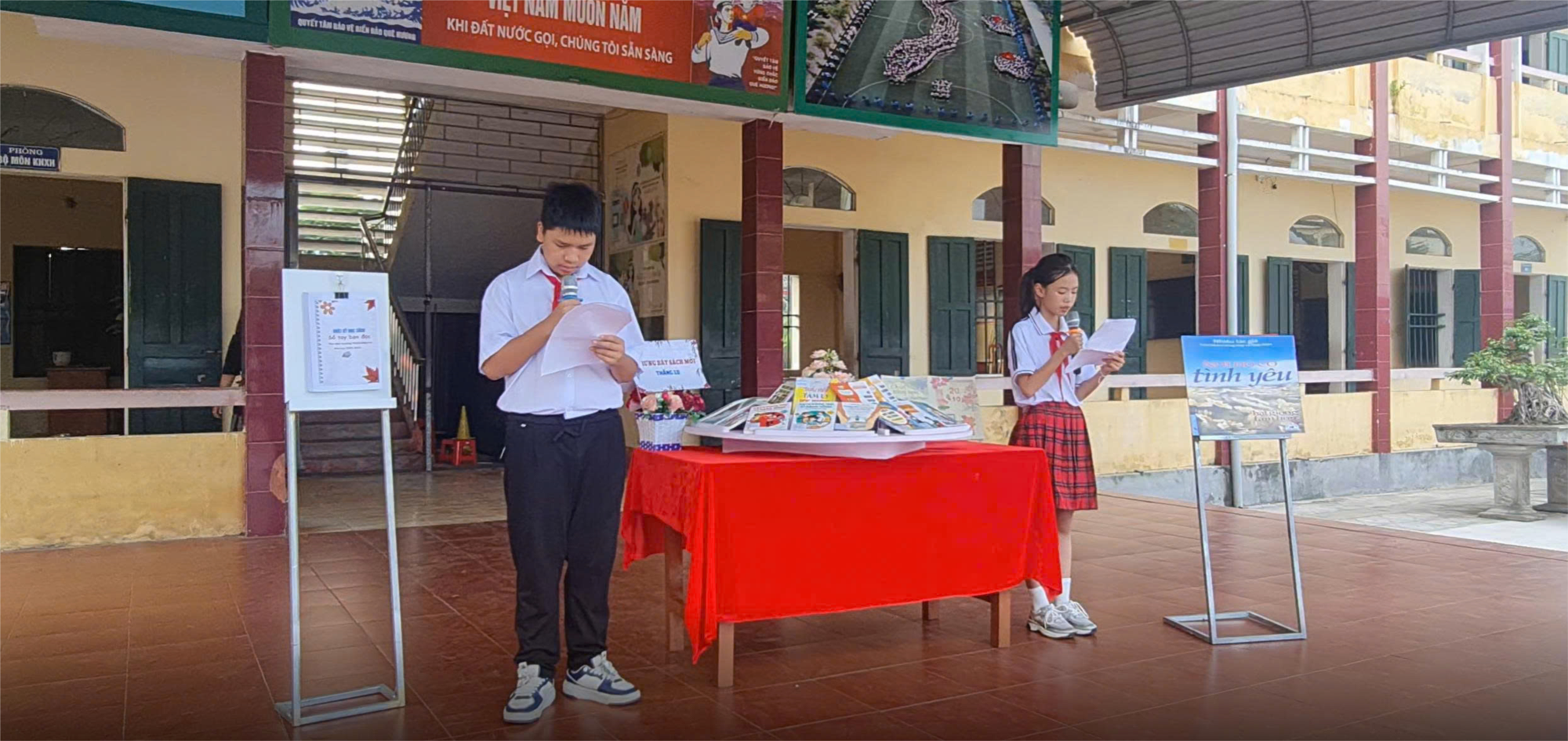 Sáng thứ Hai (13/10/2025), trong tiết Hoạt động trải nghiệm – Sinh hoạt dưới cờ, hướng tới kỷ niệm 95 năm Ngày thành lập Hội Liên hiệp Phụ nữ Việt Nam (20/10/1930 – 20/10/2025), thầy cô và các em học sinh Trường THCS Hiệp An đã tham dự buổi giới thiệu sách “Nơi đó có tình yêu” – một tập trong bộ Hạt giống tâm hồn. Buổi giới thiệu do đội Cộng tác viên Thư viện đảm nhiệm, với phần trình bày truyền cảm của hai em Tăng Thanh An và Hoàng Bảo Long.